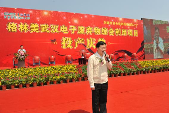 圖14 湖北省人民政府副省長郭生練致辭并宣布格林美武漢電子廢棄物綜合利用項目正式投產