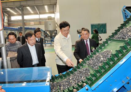 隨后,嘉賓們參觀了格林美武漢循環產業園,實地觀看電子廢棄物拆解、塑木生產的整個流程。嘉賓們再一次肯定了格林美取得的成績,鼓勵格林美在循環產業上做大做強,循環發展、創新發展、跨越式發展。